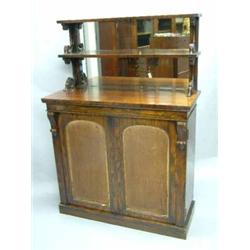 A late Regency rosewood chiffonier, with mirrored double shelf back over two arched panelled door...