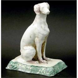 A late Victorian Mintons model of a seated dog, on rectangular base, moulded with scrolls, moulded mark, 5.5ins £70-100