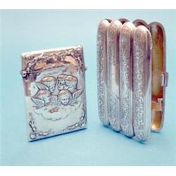 A late Victorian silver card case with Reynolds Angel decoration and an Edwardian 4 division cigar case £150-200