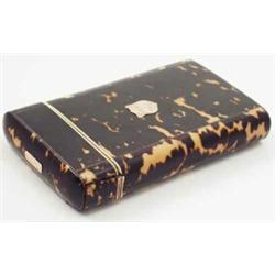 A late Victorian tortoiseshell cigar case, with ivory rim and applied gold shield 5.25ins £70-100
