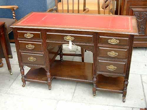 A late Victorian walnut kneehole desk, fitted seven drawers, H 76cms W 122cms £300-500