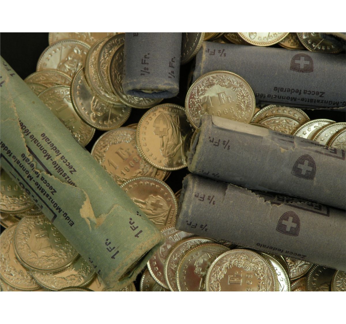 A lovely hoard of Choice to Gem Mint state Switzerland 1/2 Franc and 1 Franc silver coins. All appear to be dated either 1963 or 1964, many still in the Swiss Mint original wrappers: Approximately 300 pieces 1/2 Franc and 200 pieces 1 Franc. A total of approximately 46.97 troy ounces ASW. Est.$900