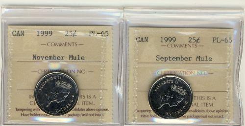 A lovely pair of 1999 September and November MULES. Both coins graded ICCS PL65