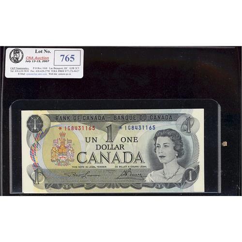 A lovely run of four consecutive replacement notes. BC-46aA 1973 $1 Lawson-Bouey, *I/G8431162 to 165. All notes are Gem Unc.