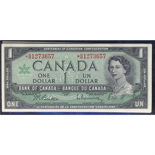 A lovely run of sixteen consecutive replacement notes. BC-45bA 1967 $1 Beattie-Rasminski, *B/M1273657 TO 672. All notes are Choice Unc.