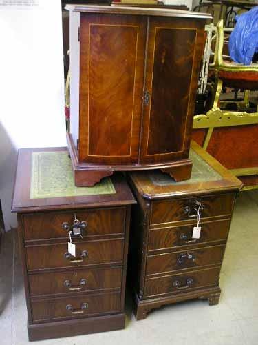 A mahogany bow-fronted stereo cabinet, H 74cms W 56cms; and two mahogany filing cabinets £50-75