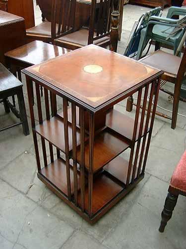 A mahogany revolving crossbanded and inlaid bookcase, H 80cms W 49cms £200-300