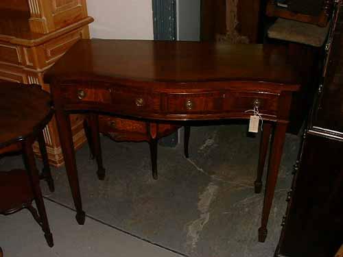 A mahogany serpentine side table fitted two drawers, H 87cms W 100cms £80-100