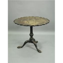 A mahogany tripod table, the one piece top with an applied carved Chippendale shaped border on...