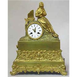 A mantel clock gilded bronze, late empire, France, face marked Foubert A. Laval, h 36 cm; part of ornament missing 2.000-3.000