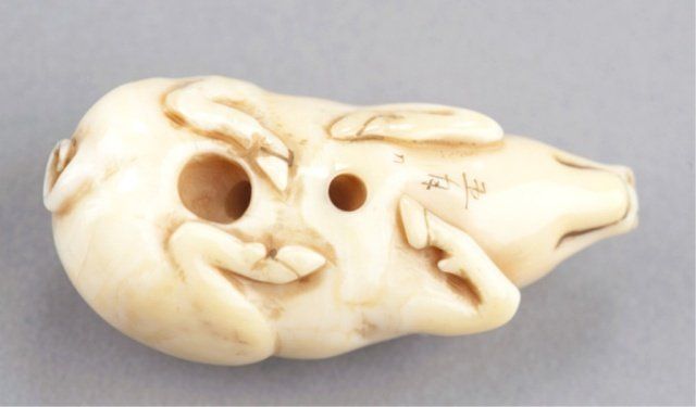 We are able to ship Netsuke from our gallery for this auction. Unfortunately we will not be able to ship any ivory to areas where its import is forbidden by law. Shipping ability and cost is contingent upon destination, insurance, and weight of the package. We charge an additional handling fee of 10/box.
