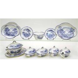 A mid-19th century Ridgways child size 37-piece earthenware dinner service, printed with rural scenes in underglaze blue £120-160