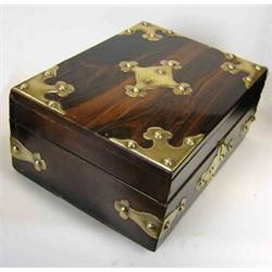 A mid 19th century brass mounted box, the rectangular hinged lid pinned with central cross and trefoil corners, 30cm wide £60-80