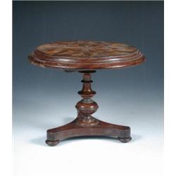 A mid 19th century miniature mahogany breakfast table, the circular top parquetried with a sunburst.