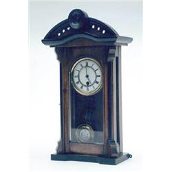A miniature 19th century Vienna regulator with enamelled dial and timepiece movement, in walnut and ebonised case, 12ins £100-150