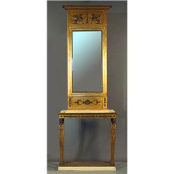 gilded and carved wood, empire style, Stockholm work, marble top, height including console 240 cm