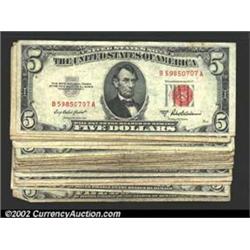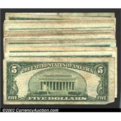 A mixed group of small size $5 bills, incl...