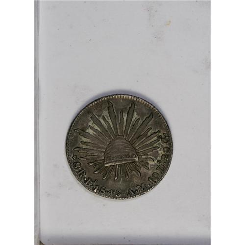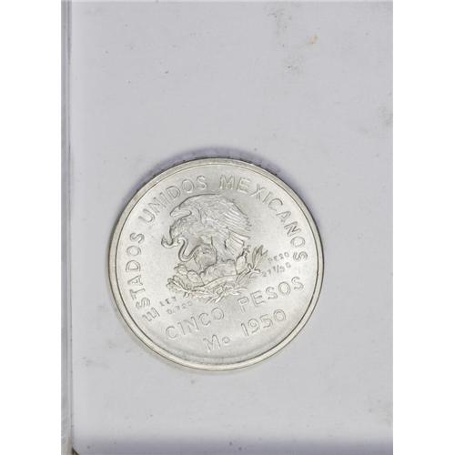<B>A mixed trio including:</B></I> 8 Reales 1789 Mo--FM, AU50 NGC; 8 Reales 1845 Pi-AM, VF; and a Railroad 5 Pesos 1950, UNC with light marks.