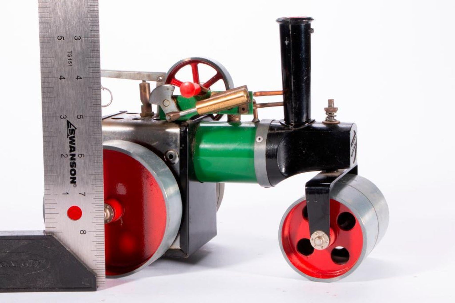 A vintage British Mamod model stream roller measuring 7 inches high x 9 x 5 1/2. As shown. Items are sold as is. Please inquire about condition if not otherwise stated.