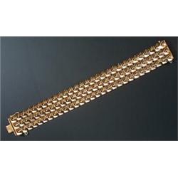 A modern Italian broad bracelet, in the form of three rows of raised articulated chevrons and sma...
