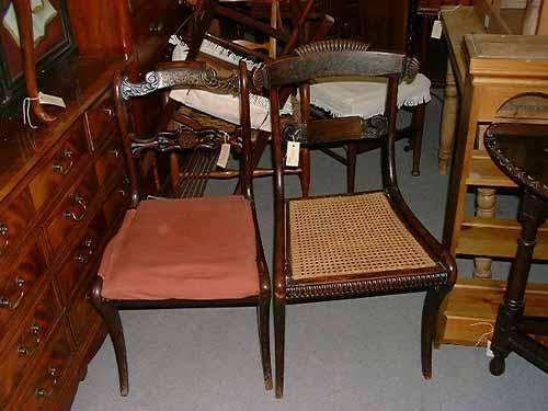 A near-matching pair of Regency mahogany cut brass-inlaid dining chairs £80-120