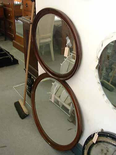 A near pair of mahogany oval wall mirrors, the largest H 70 cms W 82 cms £60-90