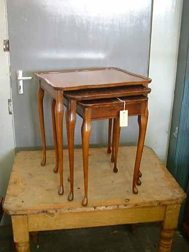 A nest of three mahogany and beech tea tables, H 55cms W 50cms (the largest) £20-30
