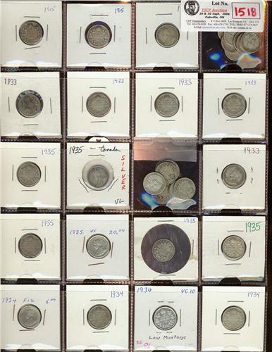 A nice lot of 36 pieces which includes all better dates of the George V series. 1915 (12), 1933 (10), 1934 (4),1935 (10). Grades vary from AG-3 to F-15.