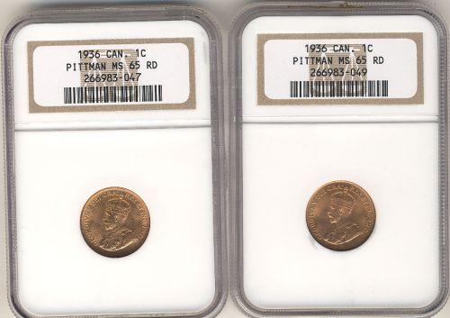 A nice pair of 1936 both graded NGC MS65 red, both example are nearly full red and quite attractive.