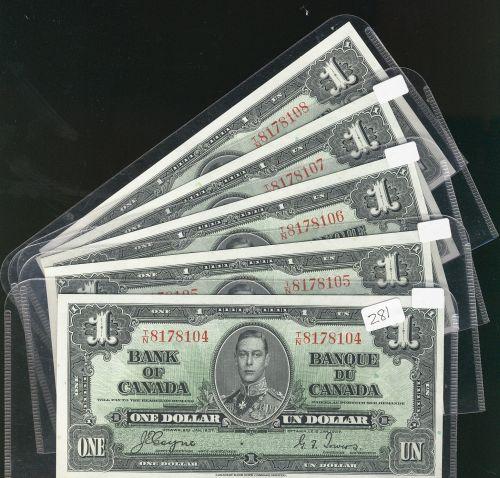 A nice run of five consecutive notes. BC-21d 1937 $1 T/N8178104 to 8178108. All notes are choice uncirculated.