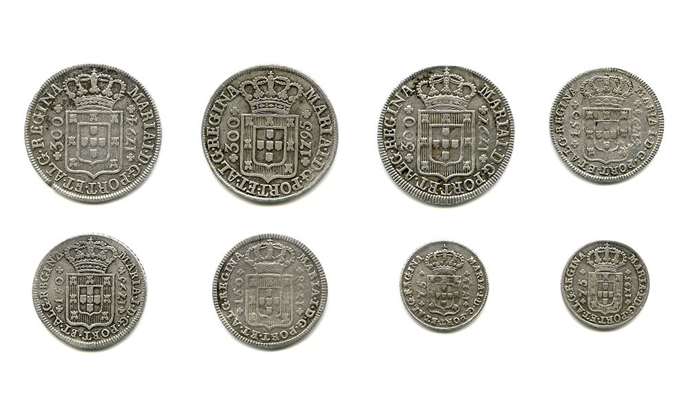 D. José I: X Réis 1750 (03.01) MBC; 1750 (03.01) BC; V Réis 1750 (02.01) BC+; 1750 (02.01) BC; 1751 (02.02) BC+; D. Maria I: 300 Réis 1794 (06.01) MBC-; 1795 reverso em letras maiores (06.05) BC+; 1797 (06.03