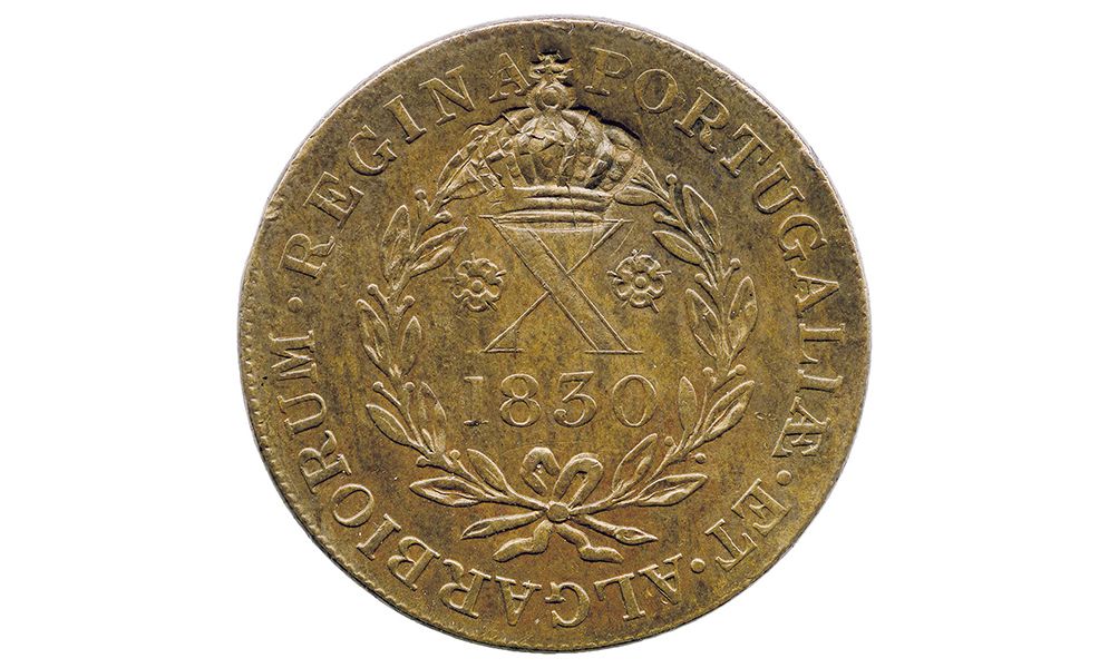 Carimbo “coroa grande” sobre X Réis 1830 Londres (02.01) MBC