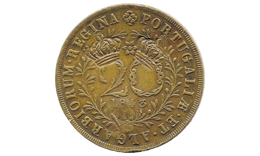 Carimbo “coroa grande” sobre 20 Réis 1843 Açores (08.01) MBC