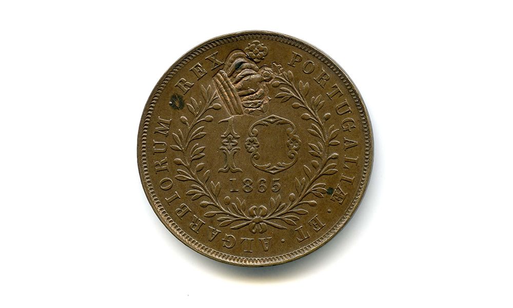 Carimbo “coroa grande” sobre 10 Réis 1865 Açores (02.01) MBC+
