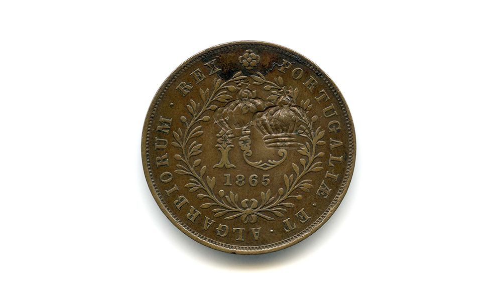 Carimbo “coroa grande” sobre 10 Réis 1865 Açores (02.01) MBC