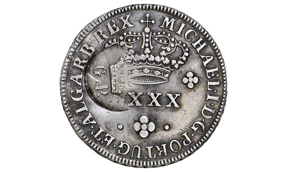 Carimbo “GP coroado” sobre Tostão (07.01) de D. Miguel I MBC
