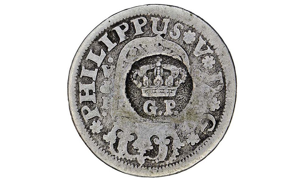 Carimbo “GP coroado” sobre Real 1733, Filipe V (Sevilha) BC
