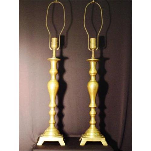Circa 1910 A pair of bronze lamp in original patina overall height 30" base 5 1/2" weight 6 pounds each .