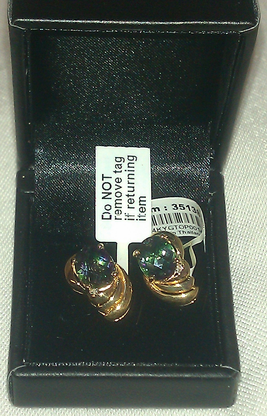 Lot Includes: 14K yellow gold earrings set w/ 2 oval cut mystic topaz & 2 round cut diamonds (.006 carats)