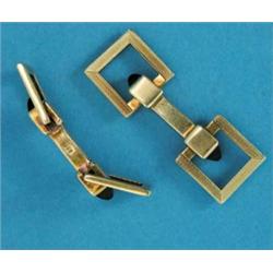 A pair of 14k gold open square cufflinks, with onyx terminals to the baton connections...