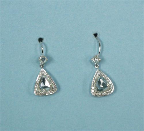 A pair of 18 kt. white gold and diamond earrings. Each set with a triangular shaped diamond drop set in a diamond set frame. Total diamond weight approx. 1.98 cts.