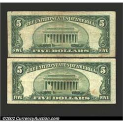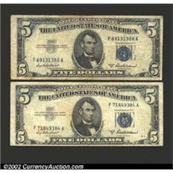 A pair of 1953A $5 Silver Certificates, Fr-1656, both grading Fine or a bit better. 2 notes...