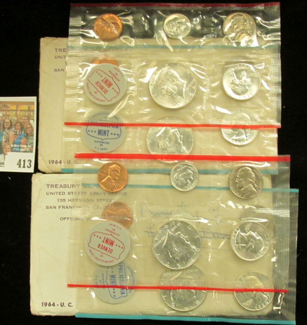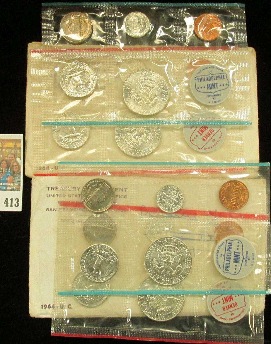 A pair of 1964 P & D U.S. Mint Sets, Original as issued in envelopes and cellophane.