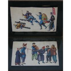 A pair of 19th century Chinese rice paper paintings, one with a figure dancing to a band, the other with aiming cannons, 19.5 x 30 cm (2) £70-100