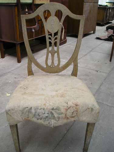 A pair of 19th century Hepplewhite style painted shield-back side chairs (a.f.). £50-80