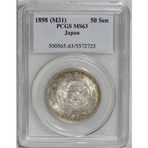 A pair of 50 Sen including: Meiji 31 (1898), MS63 PCGS,