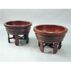 A pair of Chinese bound planters, on squat stands. 19 1/4" (49cm) diameter Est.80/120