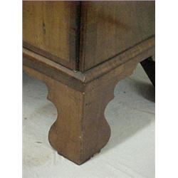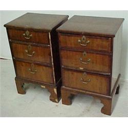 A pair of Chippendale style bachelor's chests, banded rectangular top over three graduated drawers, banded drawer fronts on bracket feet, some veneer and trim damage, 19th C., each measures 31" high x 19" across x 15 3/4" deep Estimate 600/1000