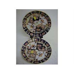 A pair of Crown Derby-style china plates, decorated with blue and orange flowers and gilt rims. (2) £30-40