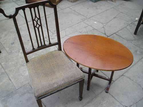 A pair of Edwardian mahogany side chairs, an oak occasional table, a folding table and a caned side chair. £60-90